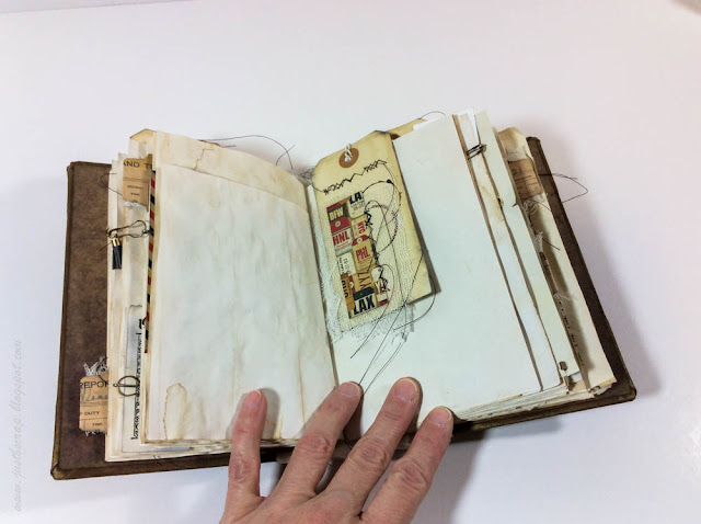 i did do a bit of stitching on one or two pages to act as page markers, again texture and this also brings in an organizational element as well but still falls in the totally and completely random column >> genius